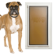 Duraflex frames are made of high strength aluminum. Flaps are tough high density vinyl with an extra wide flange sealing surface. Duraflex pet doors are professionally engineered and built to last a lifetime. The modern design works with any home décor, giving your pets freedom while keeping your home well-insulated and more energy efficient. This extra-large size provides a flap measuring a whopping 12 ½” wide X 25” high suitable for dogs up to 130 lbs. Comes with a heavy duty security panel that secures the door when not in use.